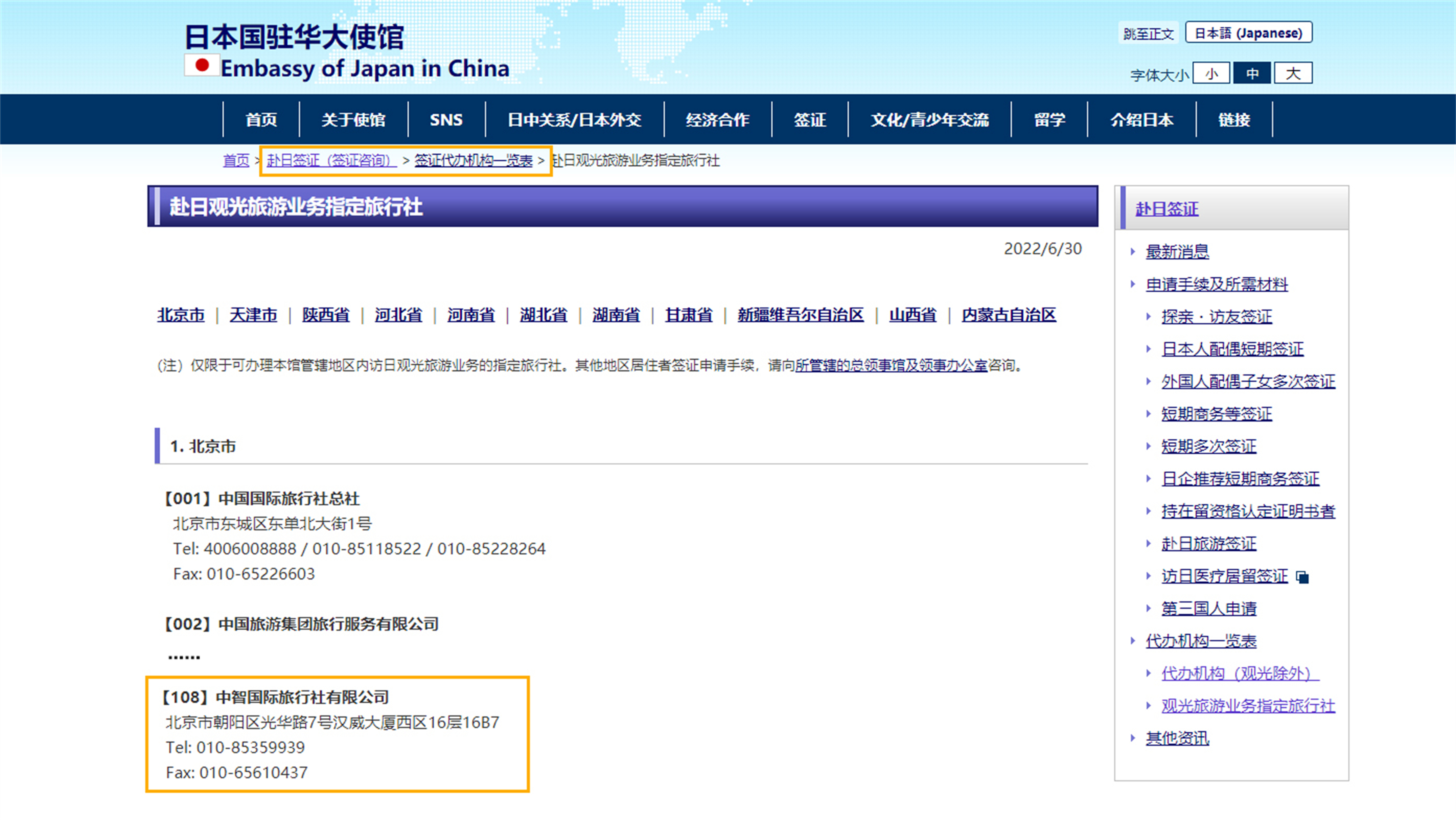 2019年9月,中智國旅成為日本國駐華大使館指定的“赴日旅游簽證代辦旅行社”,可提供訪日觀光旅游服務(wù)以及日本簽證代辦服務(wù)。