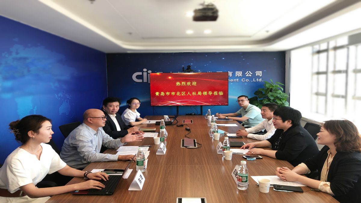 2022年9月,青島市市北區人社局局長王萍及副局長武河峰、莊曉文一行到訪中智環球國際公司,與中智環球國際公司總經理曲文閣、業務總監何漢琦就進一步合作進行深入交流與探討。