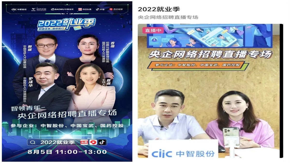 為持續(xù)助力用人單位和求職者的招聘就業(yè)服務(wù)工作保駕護(hù)航,“智領(lǐng)青年”2022夏季央企網(wǎng)絡(luò)招聘直播活動(dòng)于8月5日中午11:00在抖音直播間正式開播,由中智股份、中國(guó)寶武和國(guó)藥控股3位行業(yè)頭部大型央企代表重量級(jí)嘉賓齊聚一堂,共同圍繞Z世代就業(yè)市場(chǎng)相關(guān)話題一起碰撞、一起探討,為畢業(yè)生們淺析行業(yè)前景、分享品牌故事、不間斷招聘直播帶崗!2個(gè)半小時(shí)的直播期間,累計(jì)超262萬人次觀看直播,直播當(dāng)日成功吸引廣大學(xué)生累計(jì)投遞近4400份的求職簡(jiǎn)歷。