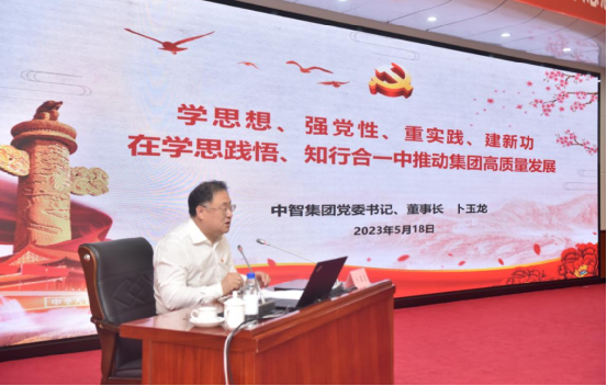 2023年5月18日,中智集團黨委書記、董事長,主題教育領導小組組長卜玉龍在讀書班上以《學思想、強黨性、重實踐、建新功——在學思踐悟、知行合一中推動集團高質量發展》為題,圍繞“主題教育怎么學、思想體系怎么悟、具體工作怎么干”三個方面作專題黨課。國資委黨委主題教育第五巡回指導組成員列席。