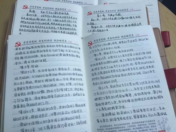 近期,中智財(cái)務(wù)咨詢有限公司為深化“兩學(xué)一做”學(xué)習(xí)教育,提高黨員干部對(duì)黨的全面認(rèn)識(shí),為黨員干部踐行“兩學(xué)一做”學(xué)習(xí)教育打基礎(chǔ),引導(dǎo)黨員逐條逐句通讀黨章黨規(guī)和系列講話,牢記入黨誓詞,牢記黨的宗旨, 中智財(cái)務(wù)公司黨支部要求黨員開展“手抄黨章100天”活動(dòng)。每日抄寫黨章原文150字左右,用100天時(shí)間抄寫黨章全文。