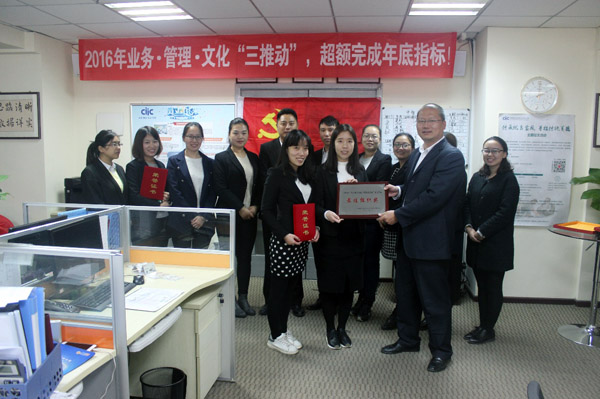 河南黨支部書記耿俊華同志領取了集團黨委授予的“最佳組織獎”獎牌,并向獲獎征文作者授予榮譽證書 |