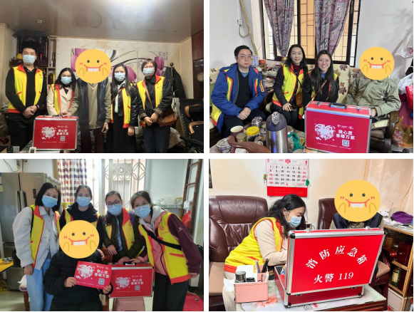 慰問活動中,全體黨員分3組走訪慰問了轄區(qū)內(nèi)9戶重點人群家庭,了解他們的身體狀況和生活需求,并向他們送上消防應(yīng)急箱。黨員們耐心地向老人們講解了消防應(yīng)急箱中滅火器、逃生面罩、煙感報警器、滅火毯等消防器材的功能和使用方法,積極向大家宣傳防火知識,提醒注意用火、用電安全,引導(dǎo)老人樹立安全意識,提高警覺,消除安全隱患。
