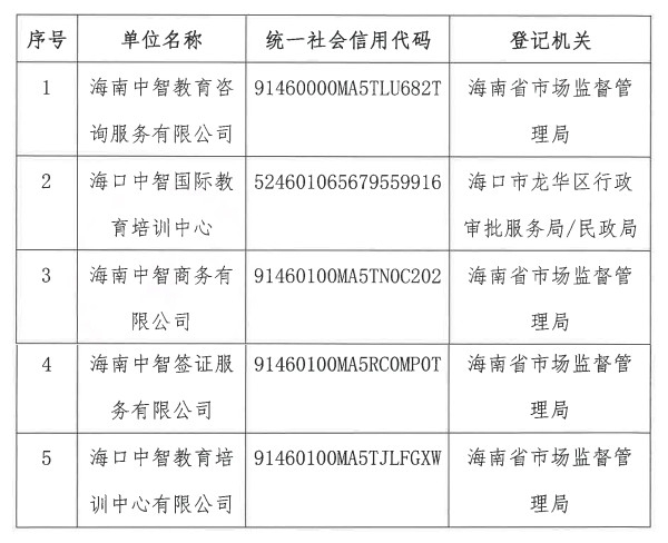 一、中智集團未授權任何外部機構使用“中智”作為商號,未授權任何外部機構使用“中智”、“CIIC”商標對外開展業務宣傳。下列單位與中智集團無隸屬或股權關系,也不存在任何存續的投資、合作、業務關系,其經營行為與中智集團無任何關聯: